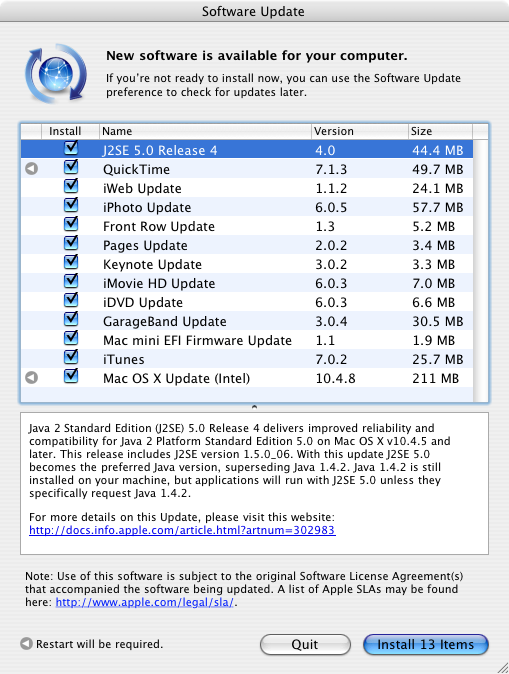 This is the easiest step. Just turn the Mac on, and a short assistant will take you through the setup process. It just takes a couple of minutes and then you're up an running. Some things to think about is- Use your existing .Mac account. If you have one, use it. Music you've bought from the iTunes store is tied to this account, and if you want to play it on your Mac mini, be sure to tie it to this account. If you don't have .Mac, you don't need to set anything up here, since you probably won't buy anything from the iTunes store on this machine.